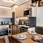 Nabízejí výhledy na hory. V místnosti najdete chladničku, plotnu a kuchyňské potřeby.